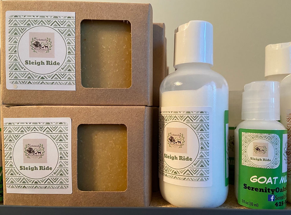Our goat milk soaps and lotions are handcrafted right on the farm at Serenity Oaks Homestead utilizing milk from our own herd of goats. Raw and local to us honey as well as organic olive oil, avocado oil, coconut oil and fragrance from either essential oils or fragrance oil completes the ingredients. Any colored soaps derive their color from natural micas. All of our products are paraben and formaldehyde free!
